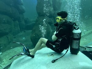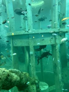 Malgré l'absence de combinaisons adaptées pour nos plus costauds qui ont tout de même supporté la température de 24°C, nos trois jeunes préparant le N1 (Alexandre B, Jean-Marc et Shan) ont eu chacun leur moniteur pour explorer complètement ce bassin atypique et y admirer les dizaines d'espèces différentes.