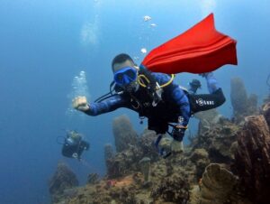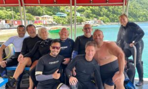 Les plongées, superbes, furent peu différentes en faune de celles de la Dominique Nord, si ce n'est les traces visibles du volcanisme actif de la Soufrière, sous la forme de milliers de bulles s'échappant du sol, notamment dans le site nommé – on se demande pourquoi – "Champagne Reef" !